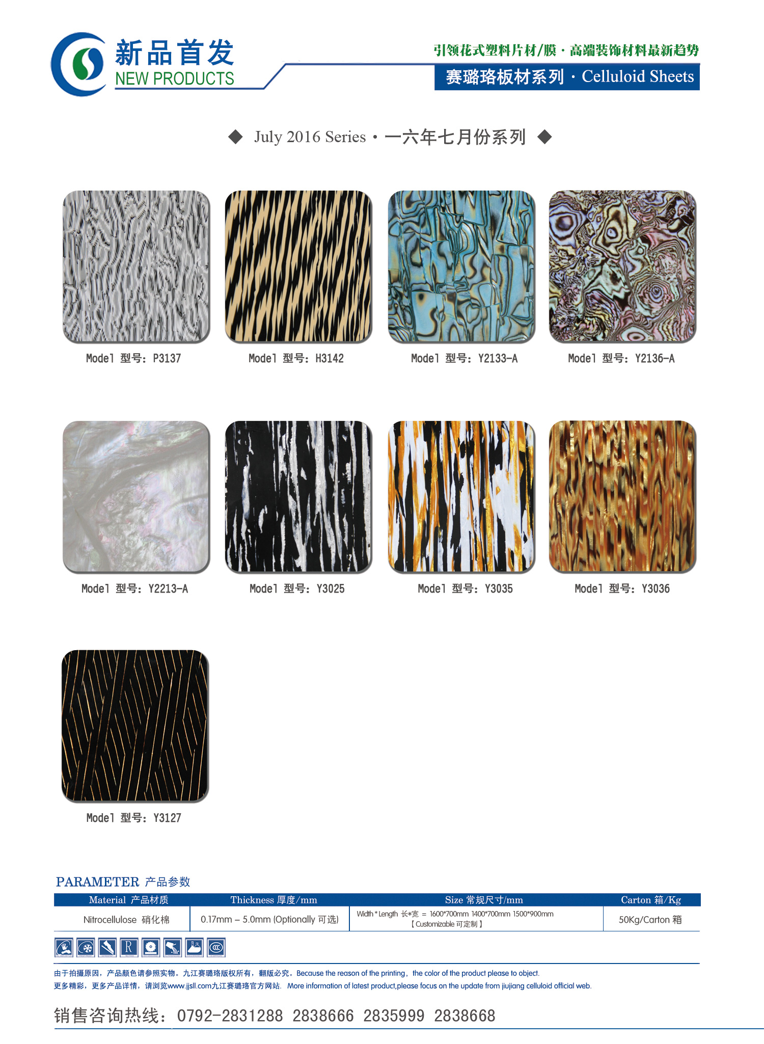 九江賽璐珞2016年七月份新品發布!