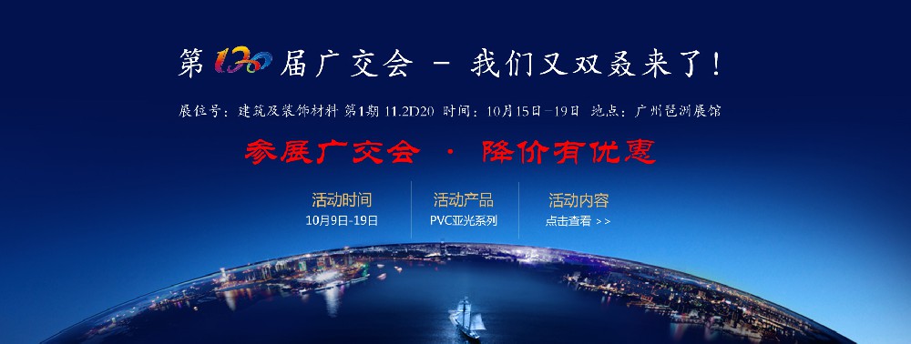 為了傾情回饋國(guó)內(nèi)外新老客戶,公司臨時(shí)決定,在廣交會(huì)展前及展中期間對(duì)PVC瑪瑙膜,PVC冰花膜等PVC亞光系列產(chǎn)品進(jìn)行降價(jià)促銷活動(dòng),活動(dòng)期間訂購均可享受以下價(jià)格優(yōu)惠: