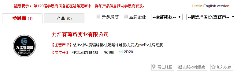 九江賽璐珞將于十月十五日至十九日參加第120屆廣交會(huì),這將是我司近幾年連續(xù)多次獲得江西交易團(tuán)分配的參展名額,我司將會(huì)再接再厲,再創(chuàng)佳績(jī)!
